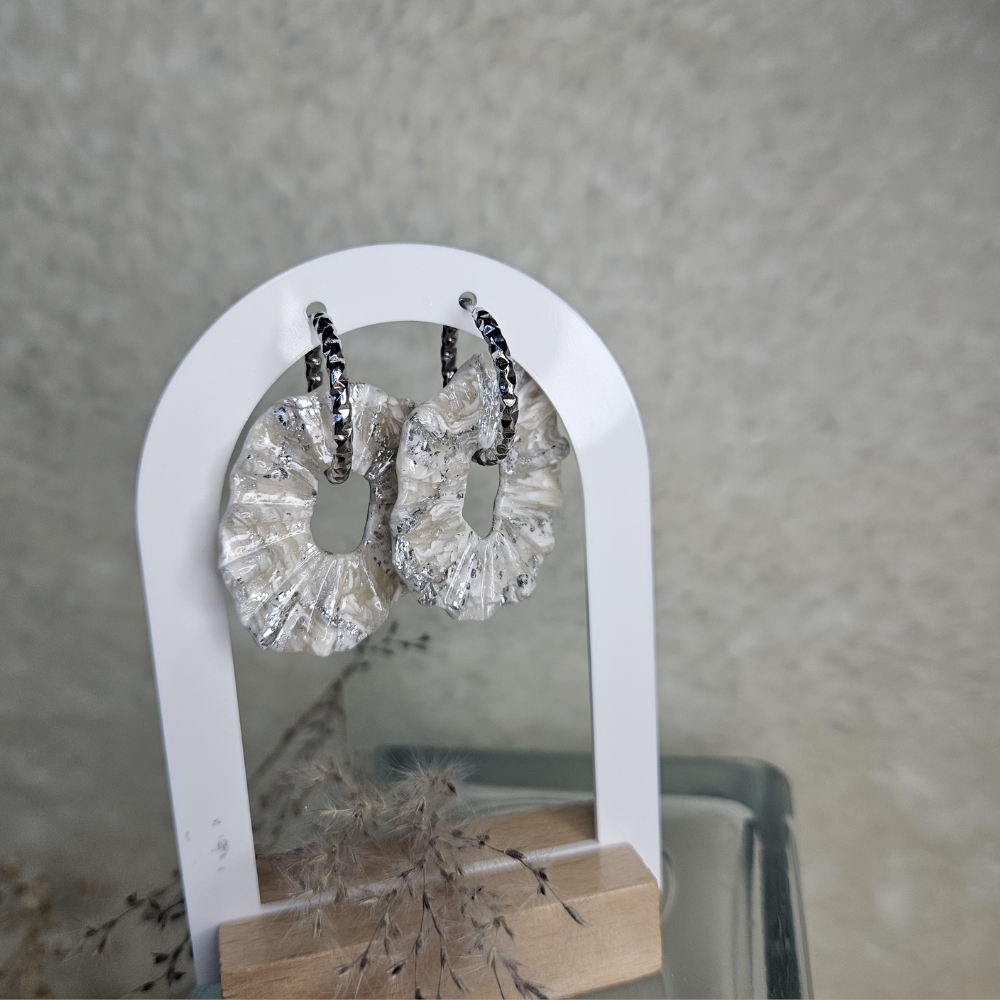 Déclinaison des pampilles Hélène, en marbré blanc et feuilles d'argent.