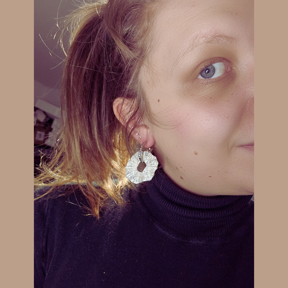 Pampilles réalisées à la main en argile polymère, finitions en résine UV.